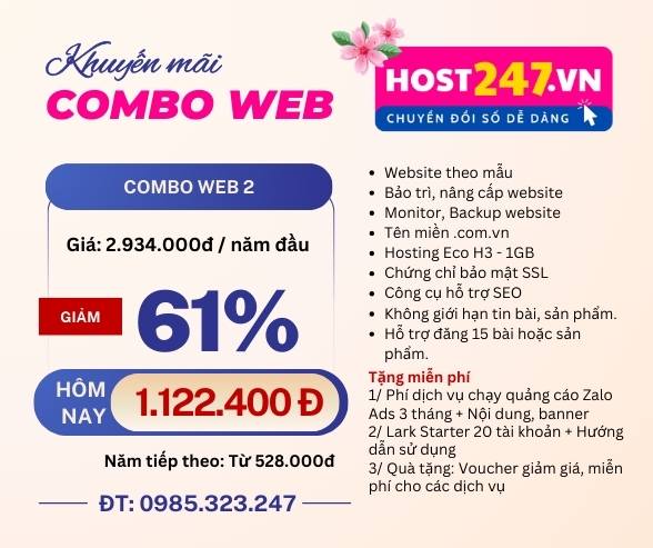 Đây là combo website theo mẫu giao diện và chức năng có sẵn, được tối ưu về giá cả, phù hợp cho các khách hàng mới khởi nghiệp hoặc muốn giảm thiểu chi phí.