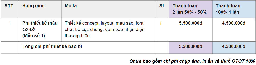 Bảng giá Thiết kế bao bì sản phẩm
