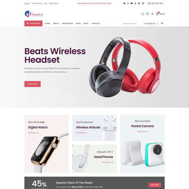 Mẫu website này thích hợp dùng cho các đơn vị, công ty, cá nhân muốn kinh doanh online.